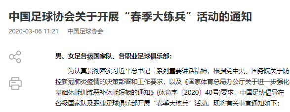 图说:足协开展“春季大练兵” 官网截图